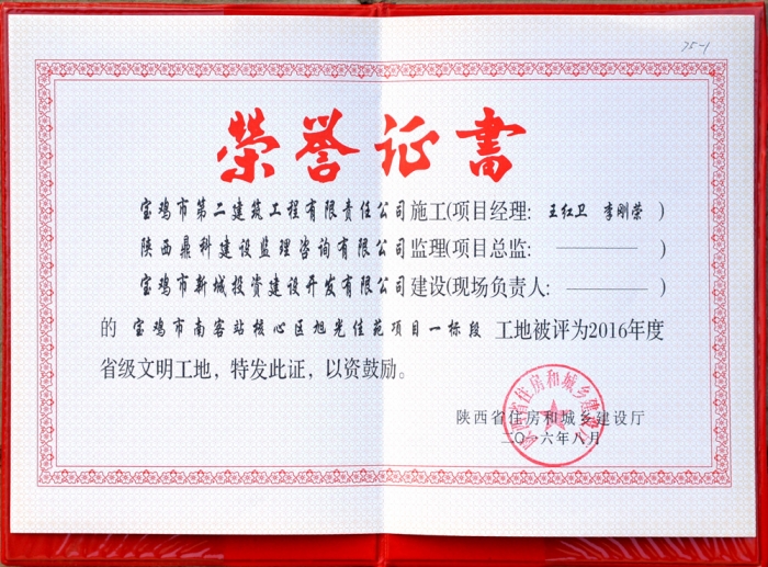 2016年省級(jí)文明工地(旭光佳苑一期)