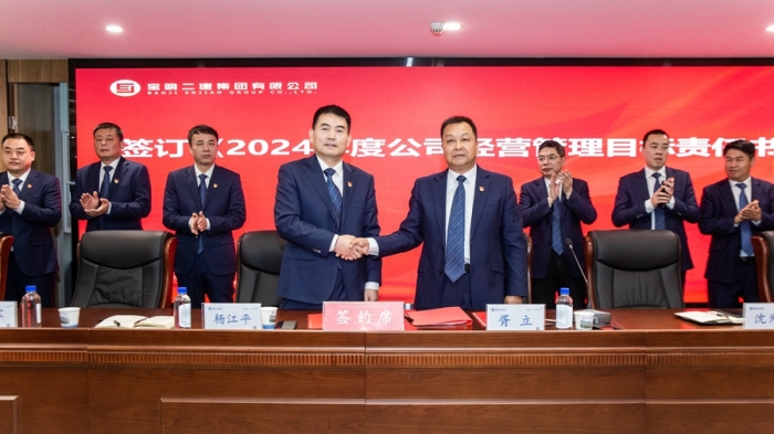 黨委書記、董事長(zhǎng)胥立與黨委副書記、總經(jīng)理?xiàng)罱胶炗啞?024年度經(jīng)營(yíng)管理目標(biāo)責(zé)任書》。