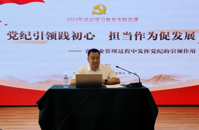 黨委書記、董事長胥立講授題為《黨紀引領踐初心 擔當作為促發(fā)展》的黨紀學習教育專題黨課。他從認識黨紀的重要性、深學細悟“六項紀律”、加強黨紀建設的要求、在管理中貫徹黨紀的思考和實踐四個方面進行了講解,并與現(xiàn)場人員進行了互動交流。