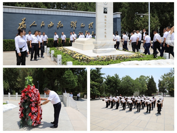 黨委書記、董事長胥立代表集團黨委向焦裕祿烈士敬獻花籃、整理緞帶。全體人員向焦裕祿紀念碑鞠躬致敬,瞻仰焦裕祿烈士墓,表達對焦裕祿同志的崇高敬意和深深哀思。